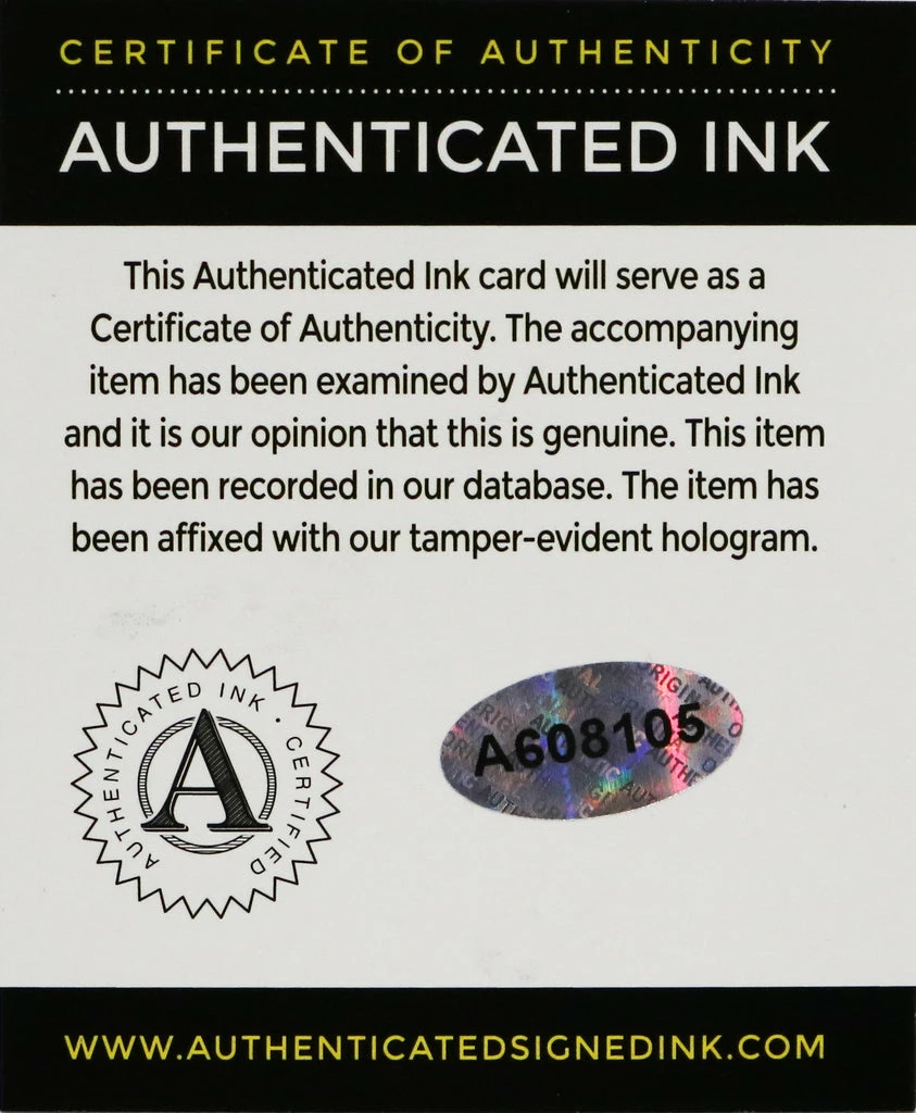 Autographed item comes with Certificate Of Authenticity (COA) Card from Authenticated Ink