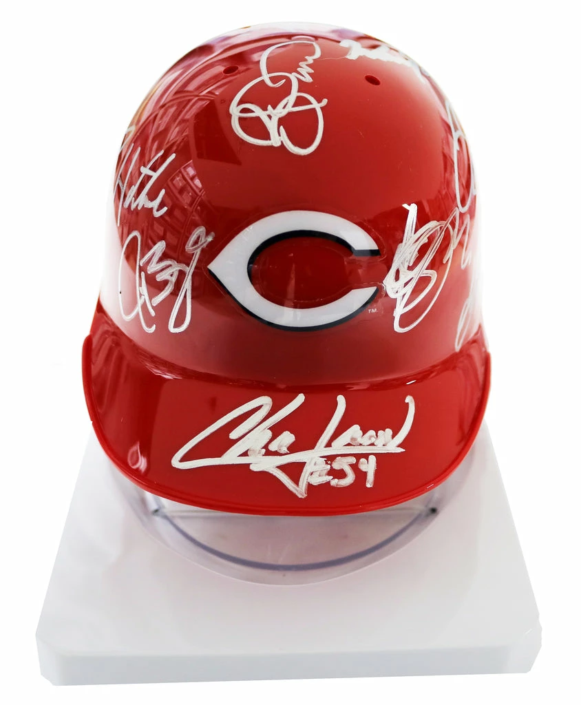 Sports-Autographs Cincinnati Reds 2015 Team Signed Autographed Mini Batting Helmet Authenticated Ink COA Votto Chapman